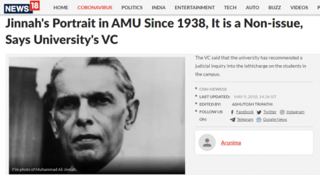During the Jinnah row, 94-year-old Riaz-Ur-Sherwani who was present when AMUSU unveiled Jinnah’s portrait in 1938 told the media that the matter was a “personal affair” of the students. “Sherwani is known to vehemently oppose Jinnah and his policies, however, he says that when the portrait was put up, the “circumstances of the country were different” and no outsider can dictate what is to be hung in the university hall,” wrote News18 in a May 6, 2018 report.