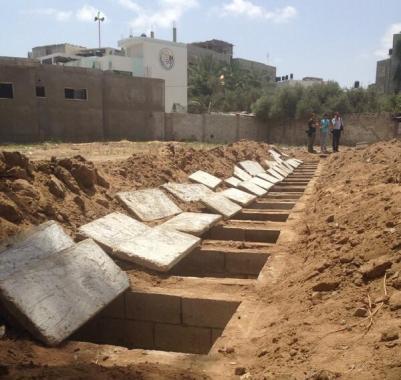 Fresh graves for the 17 members of the Al Batish family. They were all killed.