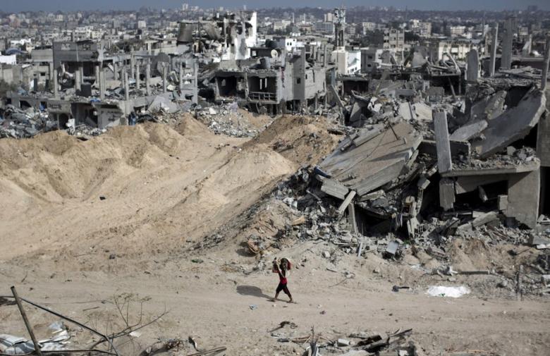 A Palestinian youth carries items salvaged from the rubble past destroyed buildings in part of Gaza City's al-Tufah neighbourhood as the fragile ceasefire in the Gaza Strip entered a second day on August 6, 2014 while Israeli and Palestinian delegations prepared for crunch talks in Cairo to try to extend the 72-hour truce. (Photo: AFP-Mohammed Hams)