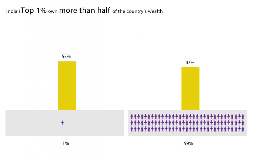 The top 0.2% of the India’ population i.e, ‘one fifth of the top 1%’ own more than 40% of the country’s wealth.