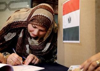 [An Egyptian woman registers at a polling station in Riyadh, Saudi Arabia on 15 May 2014, the designated voting day for expatriate Egyptians. Voters in Egypt will head to the polls on 26 and 27 May. Image by Ahmed Yousri via Associated Press] [An Egyptian woman registers at a polling station in Riyadh, Saudi Arabia on 15 May 2014, the designated voting day for expatriate Egyptians. Voters in Egypt will head to the polls on 26 and 27 May. Image by Ahmed Yousri via Associated Press]